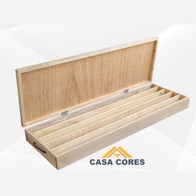 Fabricada con madera seca, apilable y resistente. Usado para el almacenamiento y protección de la muestra.